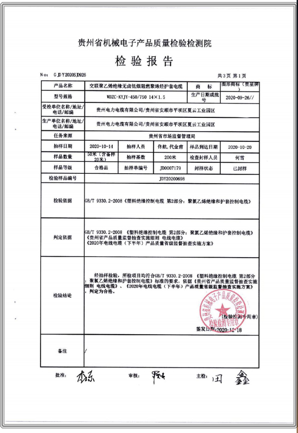 上一篇:鋁芯交聯(lián)聚乙烯絕緣聚烯烴護套無鹵低煙阻燃A類電力電纜 檢驗檢測報告