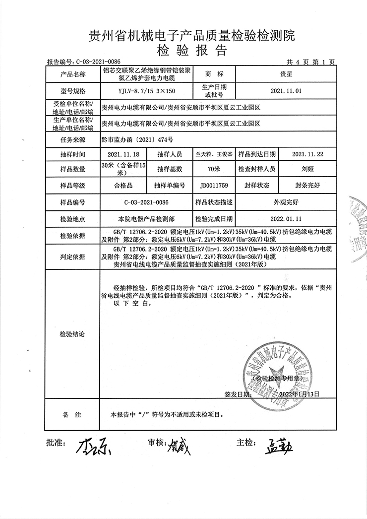 下一篇:鋁芯交聯(lián)聚乙烯絕緣架空電纜 檢驗報告