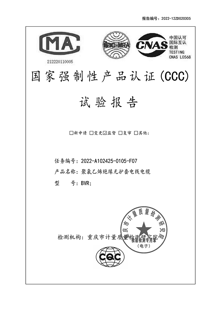 聚氯乙烯絕緣無護(hù)套電線電纜 國(guó)家強(qiáng)制性產(chǎn)品認(rèn)證(CCC)試驗(yàn)報(bào)告